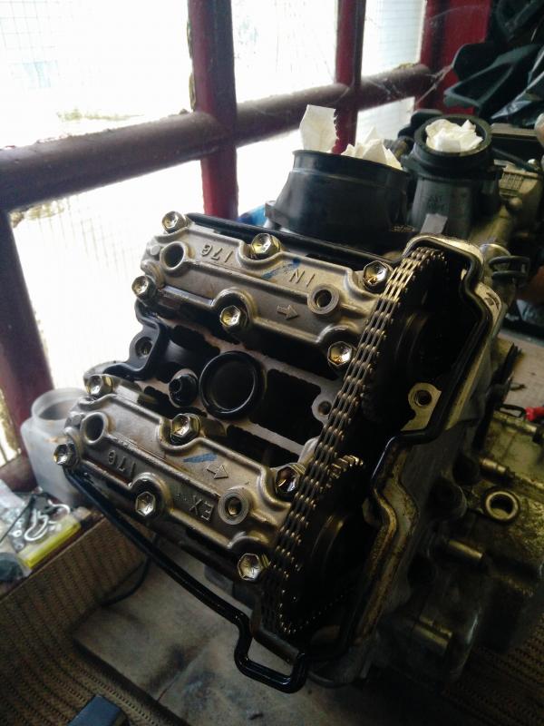 Štitnik lanca je već skinut pa nije na slici. Sljedeće je skidanje  poklopca bregastih... Bregaste nek budu okrenute od ventila da ih ne pritišću. Lakše skinuti...